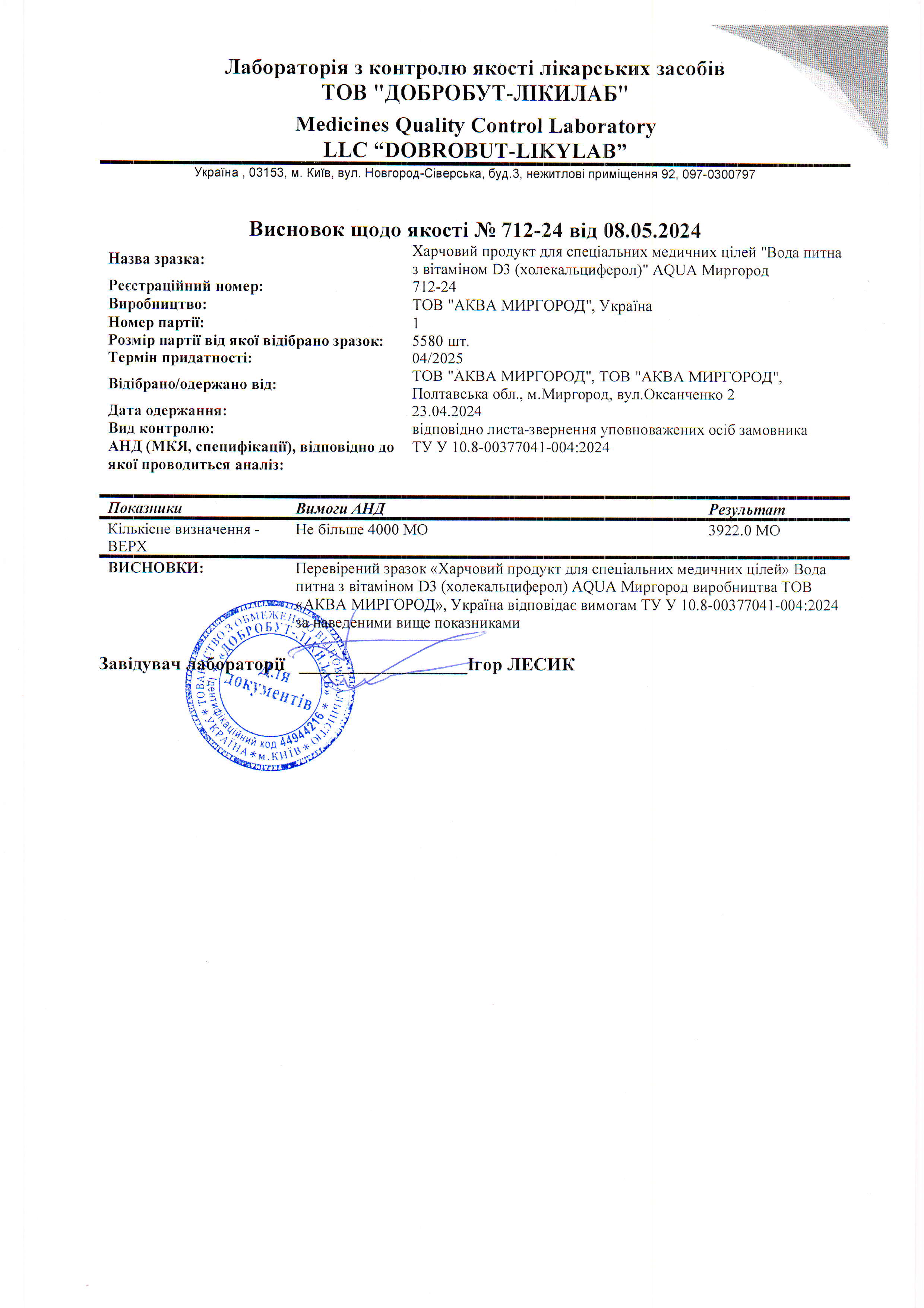 - Підтримка імунної системи: регулярне споживання води «AQUA Миргород» D3 допомагає підтримувати імунну систему на високому рівні, знижуючи ризик захворювань.
